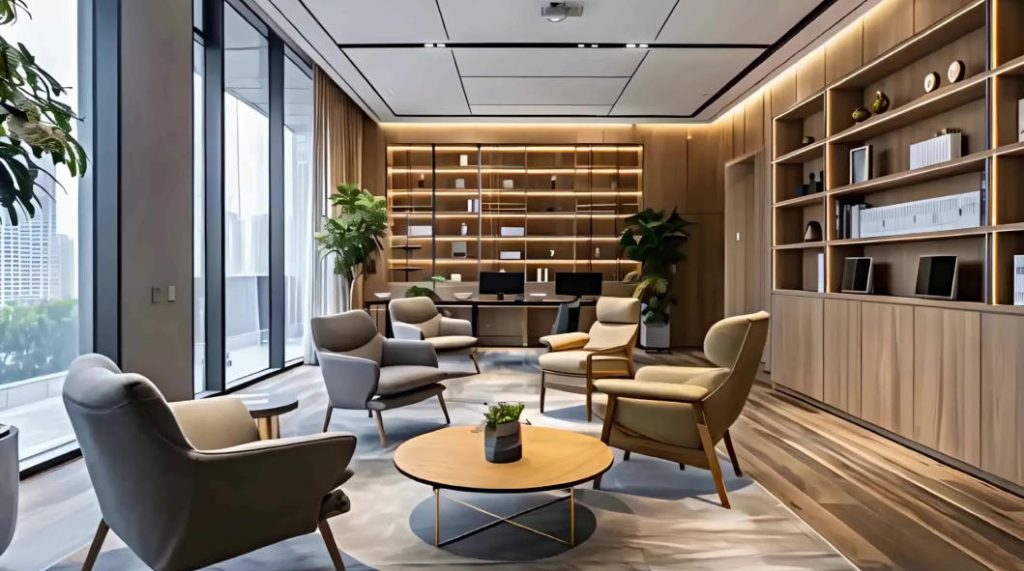会客室的桌椅安排也是有一定讲究的,原则上椅子要面对门口摆放,最忌讳背对着门口,如果能够靠着墙放是最好的,这样表示有靠山,坐起来也很稳,也有欢迎客人的意思。